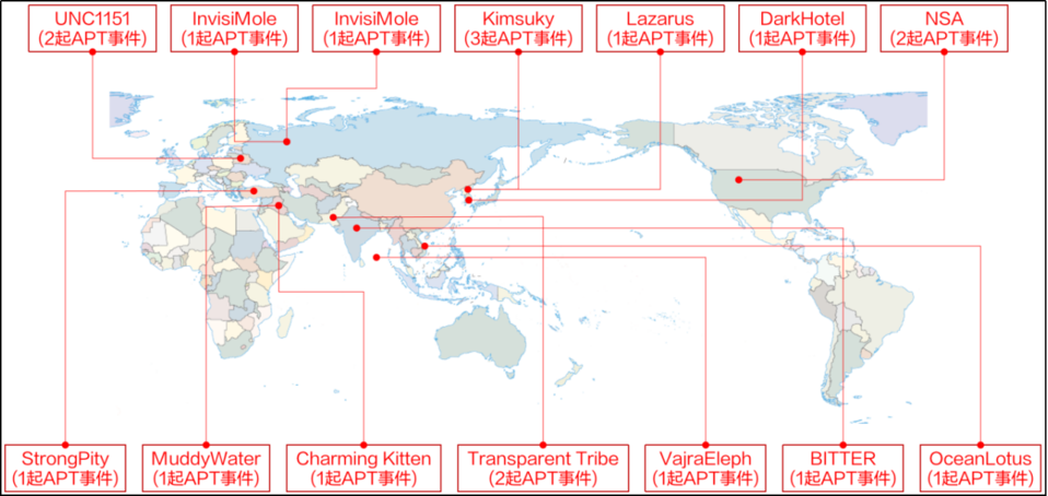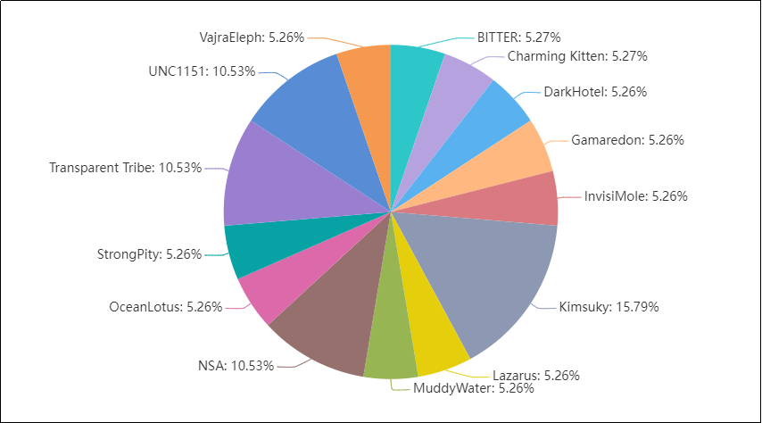 此处分析了Kimsuky、NSA、Transparent Tribe、UNC1151、Bitter、Charming Kitten、DarkHotel等14个APT组织情报。