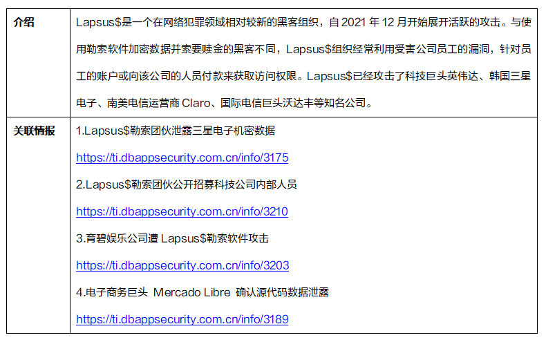 本月,Lapsus$团伙是引起最多关注的勒索组织之一,该团伙在3月上旬持续针对大型公司发起攻击,并且于3月10日公开招募受雇于主要科技巨头和 ISP 的内部人员。此前,LockBit 2.0勒索软件团伙也曾招募企业内部人员以获取访问权限,这表明招募内部员工的策略在勒索团伙中已逐渐形成趋势,此类活动会造成重大的内部威胁风险,并且类似的手法可能会被暗网上的其他攻击者积极利用。