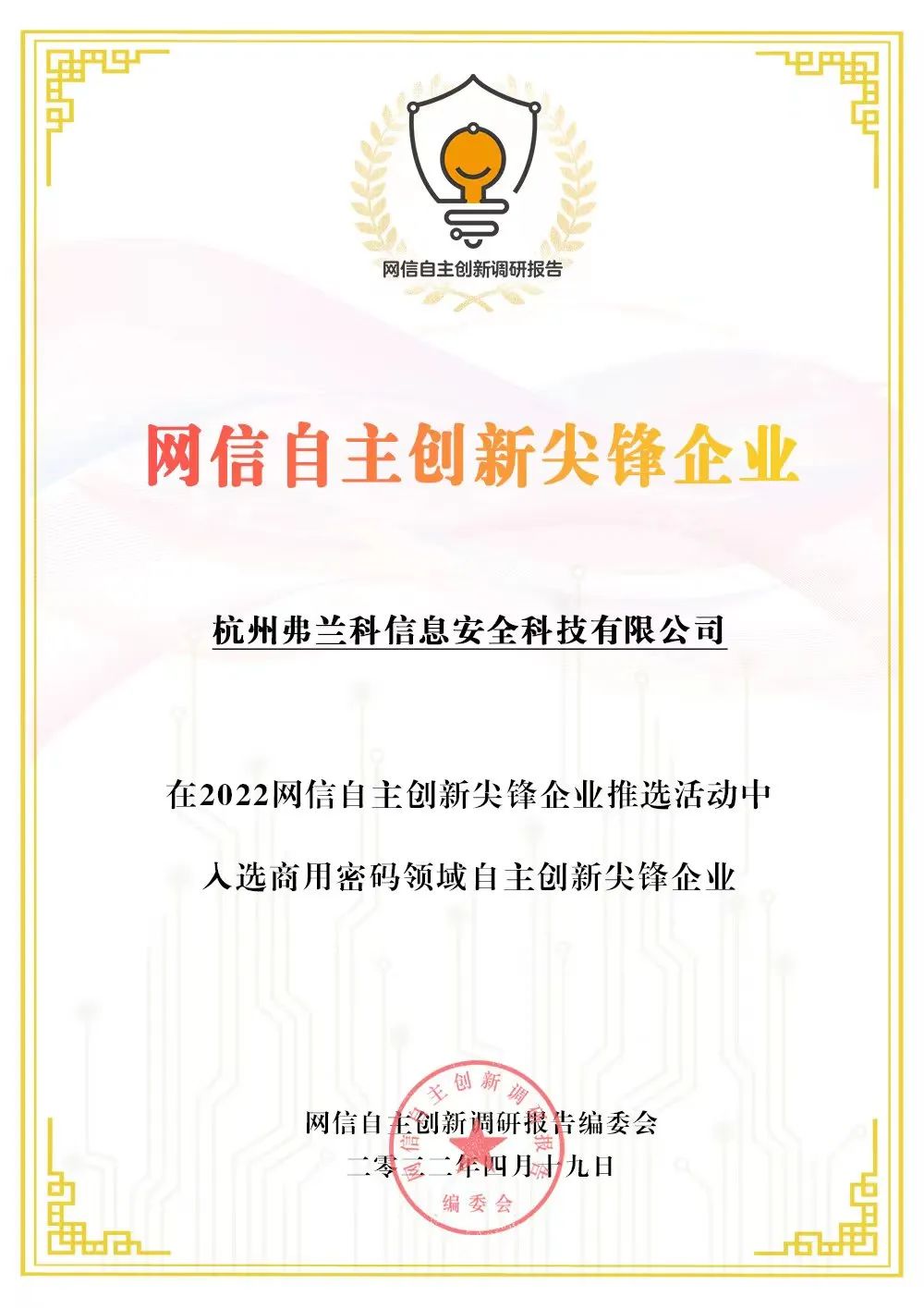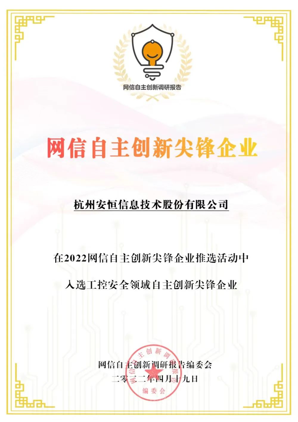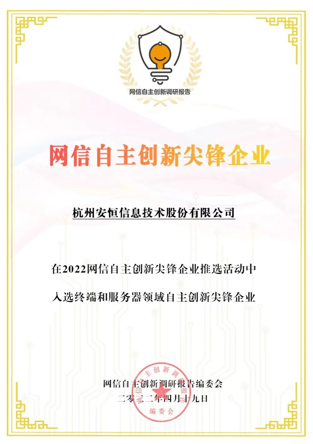编委会还推选出一批具有突出创新能力、取得显著创新成果、能够代表创新水平的“网信自主创新尖锋企业”,安恒信息荣获“网信自主创新尖锋企业”工控安全领域、云计算领域、终端和服务器领域三项大奖,子公司杭州弗兰科信息安全科技有限公司荣获商用密码领域大奖,这是对我们在信创领域研究成果的充分肯定。
