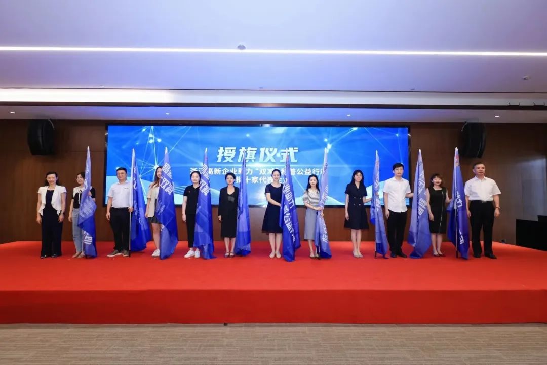 启动仪式上,浙江省高新技术企业协会发起了《浙江高新企业助力“双减”科普公益行动倡议书》,省科协、省教育厅、省科技厅为海康威视、安恒信息等10家高新技术企业代表授旗出征。