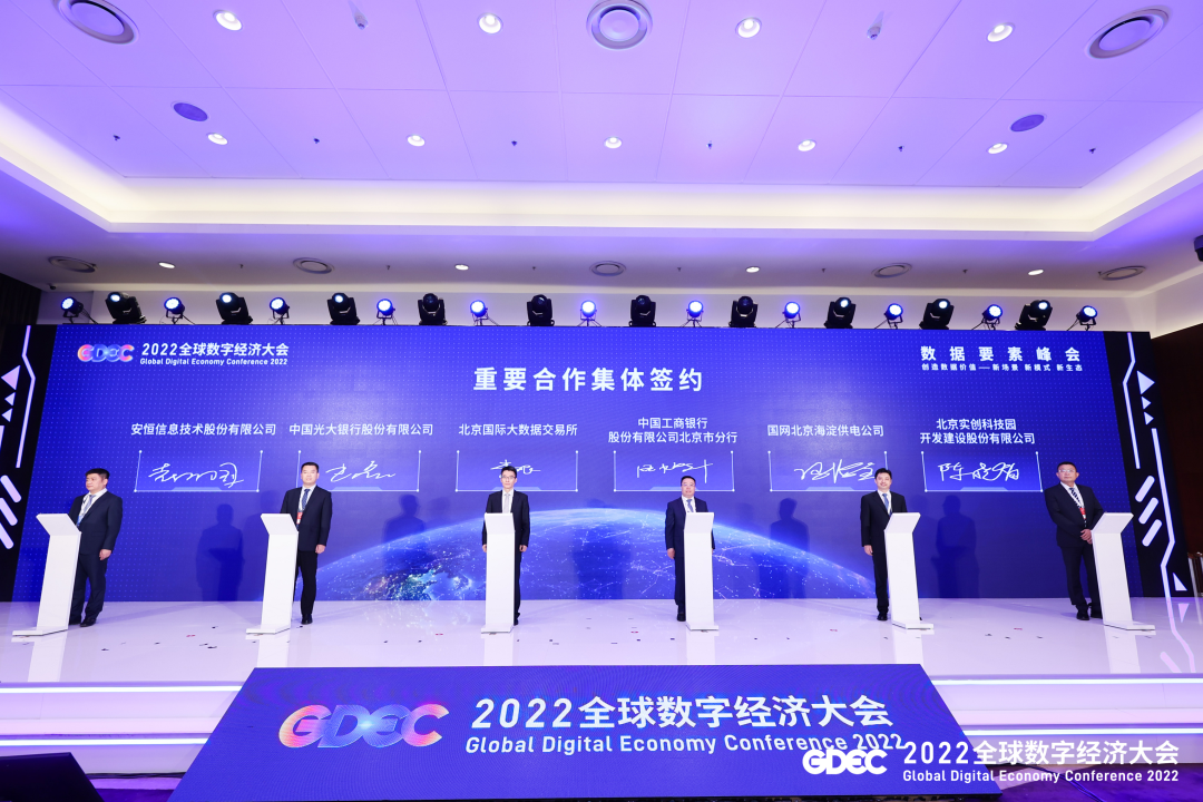 7月29日,2022全球数字经济大会·数据要素峰会在北京成功举办,由全球数字经济大会组委会主办,北京市经信局、朝阳区人民政府、北京金控集团承办,北京国际大数据交易所协办。作为本次数字经济大会的核心峰会,数据要素峰会广邀行业内外的学者大咖、专家,安恒信息首席科学家、高级副总裁刘博,高级副总裁赵万国受邀出席峰会主论坛,期间刘博发表《隐私计算与数据要素实践》主题演讲,安恒信息与北京国际大数据交易所(以下简称“北数所”)签署合作协议。