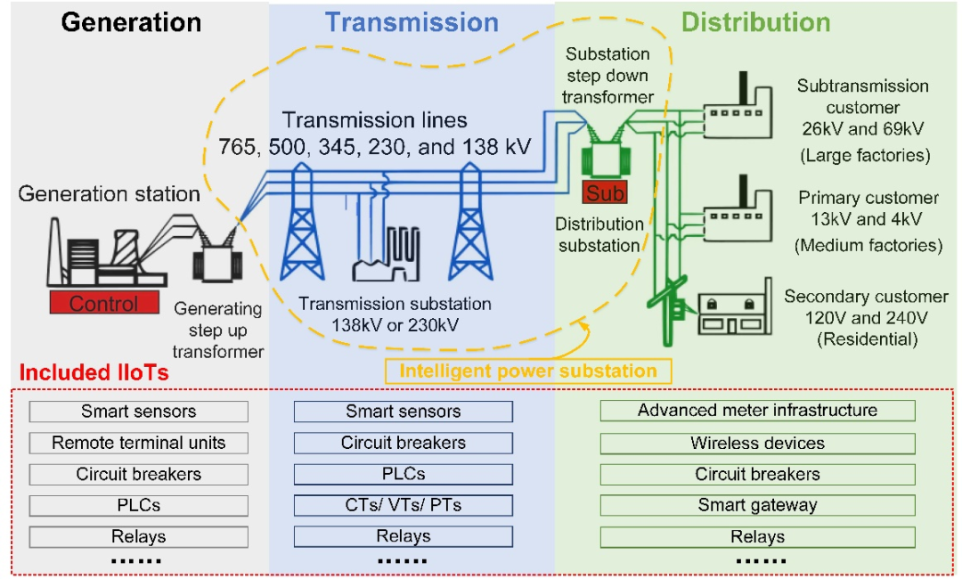 典型工业网络(智能变电站通信网络)包含的关键工业IoT设备