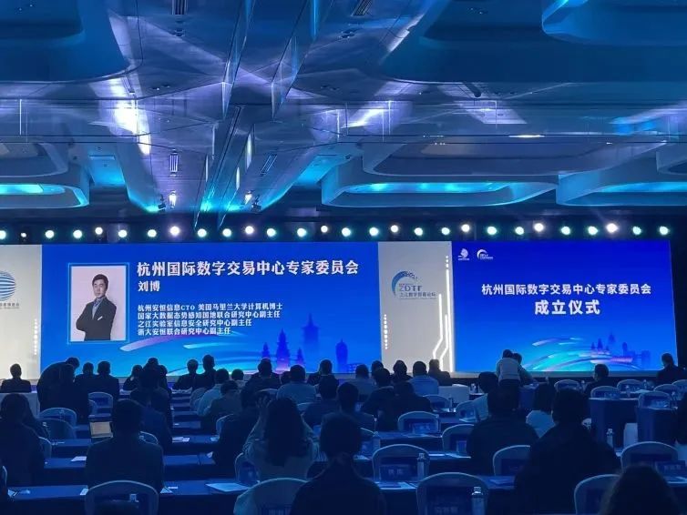 12月12日下午,在首届全球数字贸易博览会国际数字服务与数字产品交易论坛上,杭州国际数字交易中心专家委员会正式成立,安恒信息首席科学家、高级副总裁刘博入选首批专家委员。