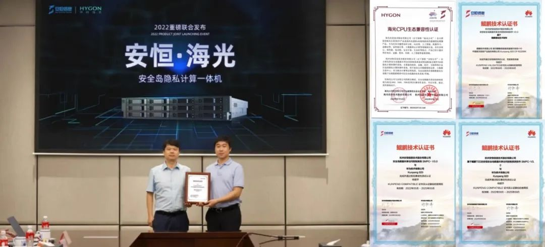 ● 安恒信息与海光深度合作,联合发布国内首款完全国产化的安全岛隐私计算一体机。