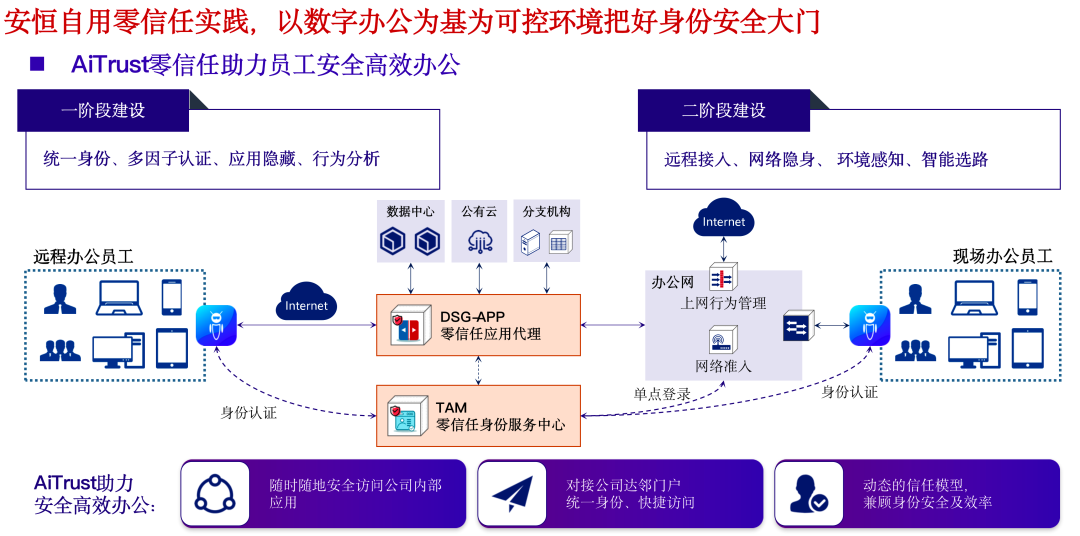 《 指导意见》提及“在电子商务、远程医疗、在线教育、线上办公、直播新媒体等新型应用场景”,以线上办公为例,在3年前疫情刚开始的时候,安恒信息就投入了线上办公零信任的方案研发,打造了轻量化、体验佳、安全可靠的数字化安全接入平台AiTrust,提供多种场景下远程接入需求、多因子认证、实时风险评估、动态策略调整等功能。同时还向各界提供免费180天服务,助力共克疫情时艰。公司对研发产品线的要求是:可以在自己公司内使用的产品,一定先自己用;公司内无匹配场景的,寻求样板客户联合打造,以此提高产品质量和方案竞争力。