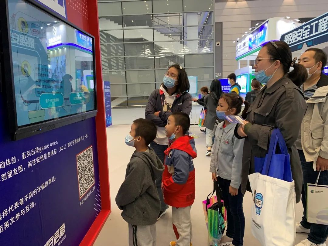 安恒信息互动展区精彩呈现趣味互动内容,紧扣网安周“网络安全为人民 网络安全靠人民”的主题,成为本届网安周展区的一大亮点,不仅吸引了各级领导、参会嘉宾驻足参观互动,同时,也在大学生和小学生群体中狠狠圈了一波粉。
