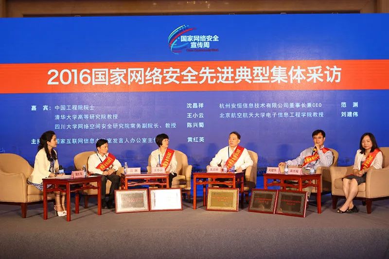 在中央网信办和教育部指导下,中国互联网发展基金会网络安全专项基金组织了网络安全优秀人才、优秀教师等评选活动。经过中央部门和院士推荐、专家评审、公示,评选出网络安全杰出人才1名、优秀人才10名、优秀教师8名。据《国家网络安全宣传周活动方案》,开幕式上表彰了网络安全先进典型。杭州安恒信息技术有限公司董事长范渊荣获“2016年网络安全优秀人才奖”,代表“网络安全优秀人才”接受媒体集体采访。