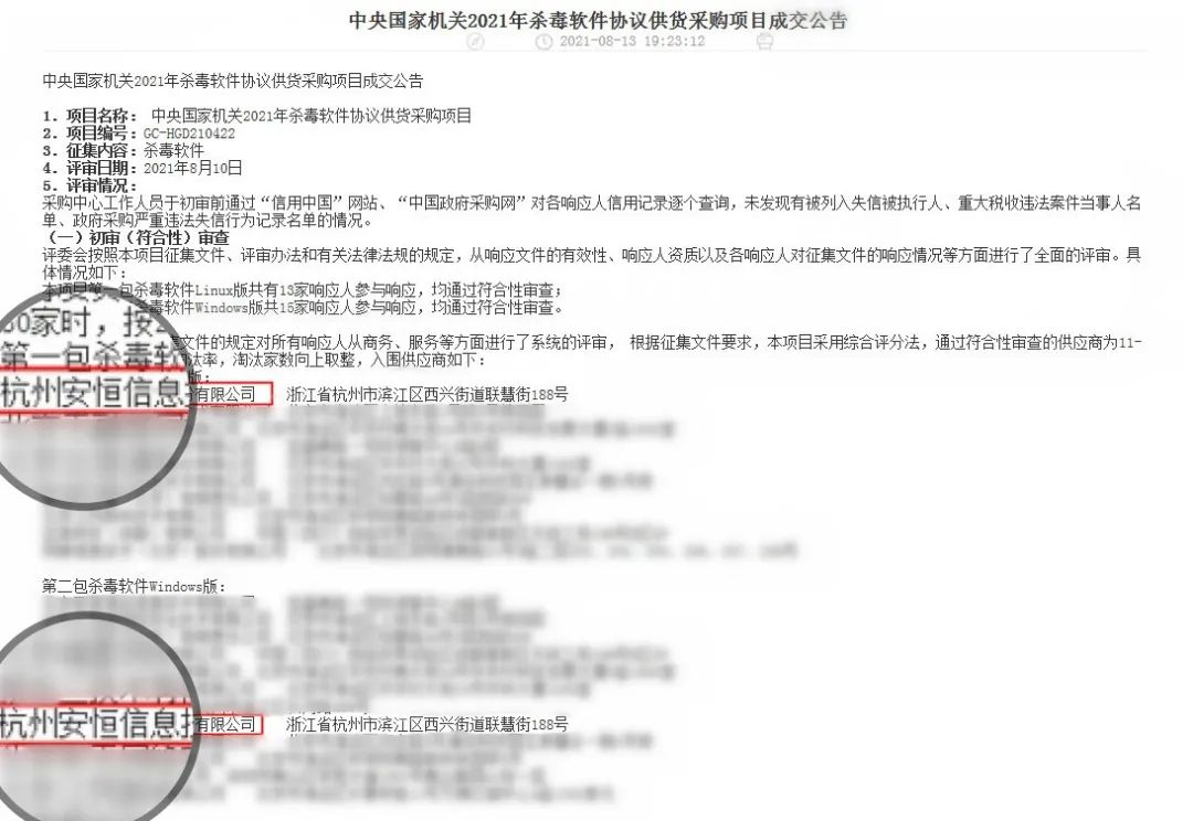 近日,中央国家机关2021年杀毒软件协议供货采购项目成交公告发布,凭借良好的企业信誉、强大的产品竞争力和卓越的技术服务等综合能力,安恒信息明御®主机安全及管理系统(EDR)Linux版&Windows版在众多厂商中脱颖而出,成功入围。