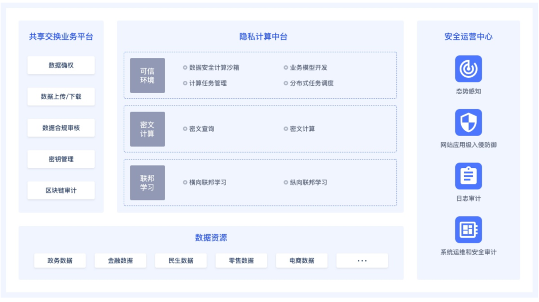 AiLand数据安全岛平台则专注于保障数据安全流通,致力于解决数据共享的信任和隐私保护问题,综合应用安全计算沙箱,联邦学习,区块链,密文计算等多种前沿技术,配合关键行为数字验签和全业务流程追踪审计技术,实现共享数据的所有权和使用权分离,确保数据 “可用不可见”,保障数据共享交换过程的可靠、可控和可溯。