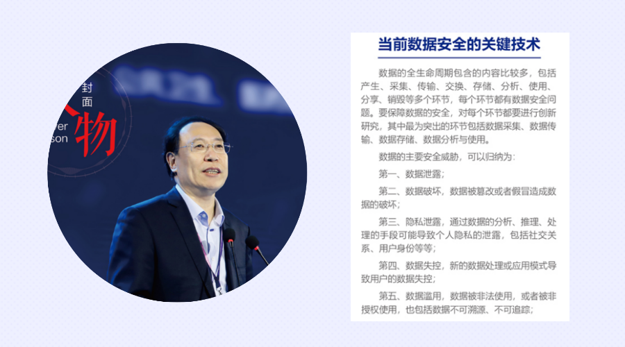 作为数据安全的科研代表,中国科学院院士冯登国应邀成为本期封面人物。冯院士在2021西湖论剑·网络安全大会上发表了关于《数据安全:保障数据高效合理开发利用的基石》的主旨演讲,我们将其收录至本期,继续分享他关于“多种数据安全、隐私保护的关键高可用技术”等方面的真知灼见。