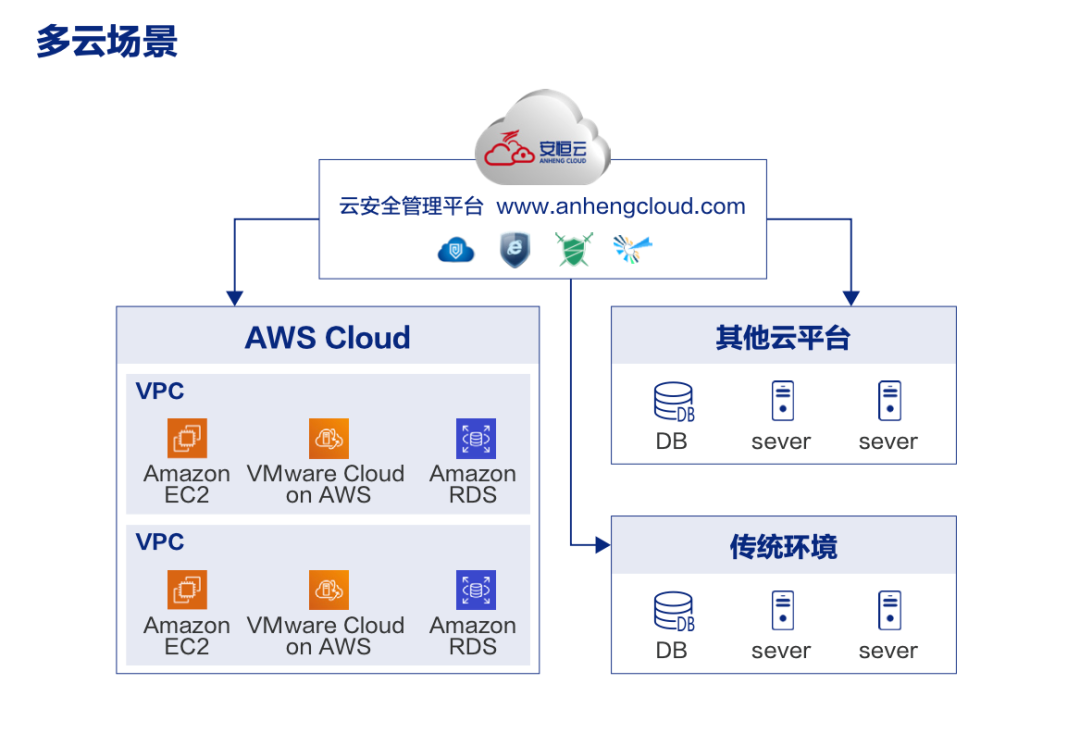 很多企业用户的业务覆盖在除亚马逊云以外的多个品牌的云上,甚至传统的数据中心,如此一来构成多云混合云的架构,安全的统一建设成为安全建设的痛点和难点。