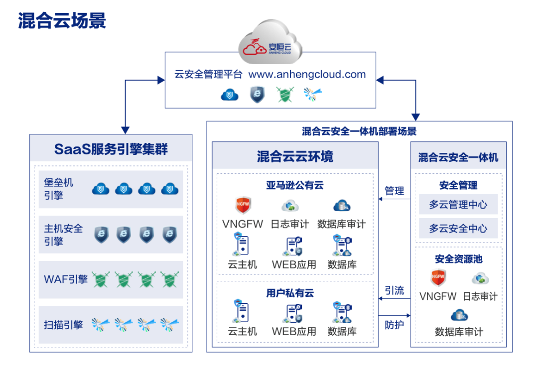 安恒云等保解决方案覆盖多云、混合云、公有云场景。