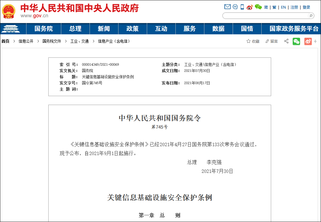 第二条 本条例所称关键信息基础设施,是指公共通信和信息服务、能源、交通、水利、金融、公共服务、电子政务、国防科技工业等重要行业和领域的,以及其他一旦遭到破坏、丧失功能或者数据泄露,可能严重危害国家安全、国计民生、公共利益的重要网络设施、信息系统等。