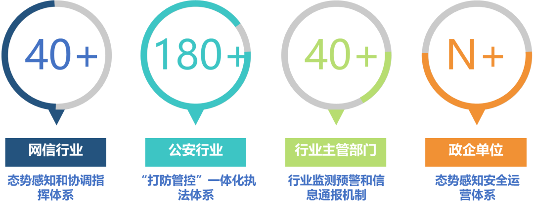 ● 响应:经过多年积累,安恒信息参与了大量的项目实践,在网信、公安、行业主管单位等监管有近300+的实践案例,对各行业、领域网络安全监管的业务需求、业务流程有着深刻的理解,最终构建了横向联动、纵向贯通的网络安全态势感知、协调指挥和应急处置工作机制,实现纵向、横向网络安全信息共享交换。