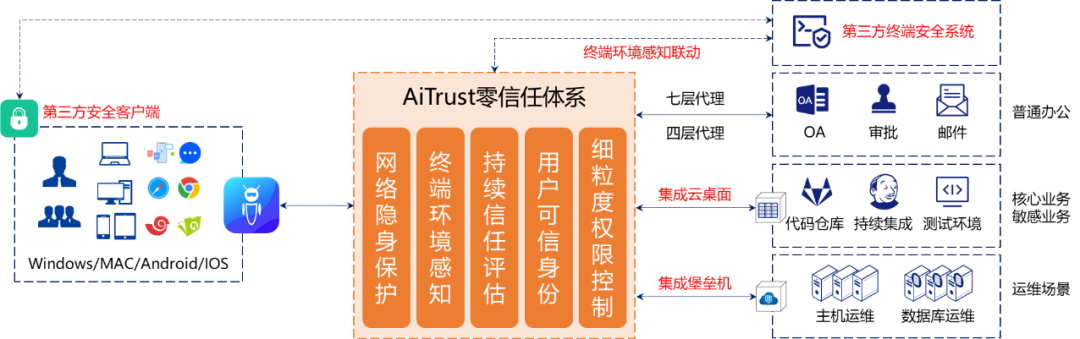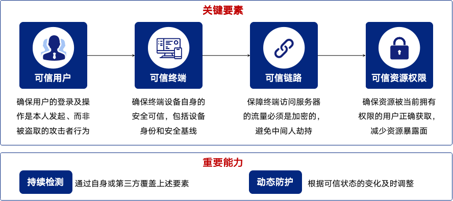 零信任把安全架构延伸到用户终端上,有更强的控制和感知能力;