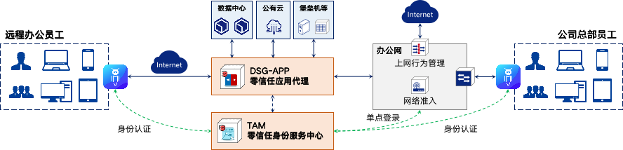 远程办公场景下正确的实施零信任方案后业务访问逻辑图