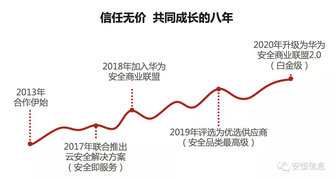 “生态就是生生不息,价值互通。”安恒信息首席营销官张小孟这样认为。作为华为现阶段唯一一家白金级安全商业联盟2.0合作伙伴,自2013年合作伊始,安恒信息便与华为一同开启了信任无价、共同成长的八年。