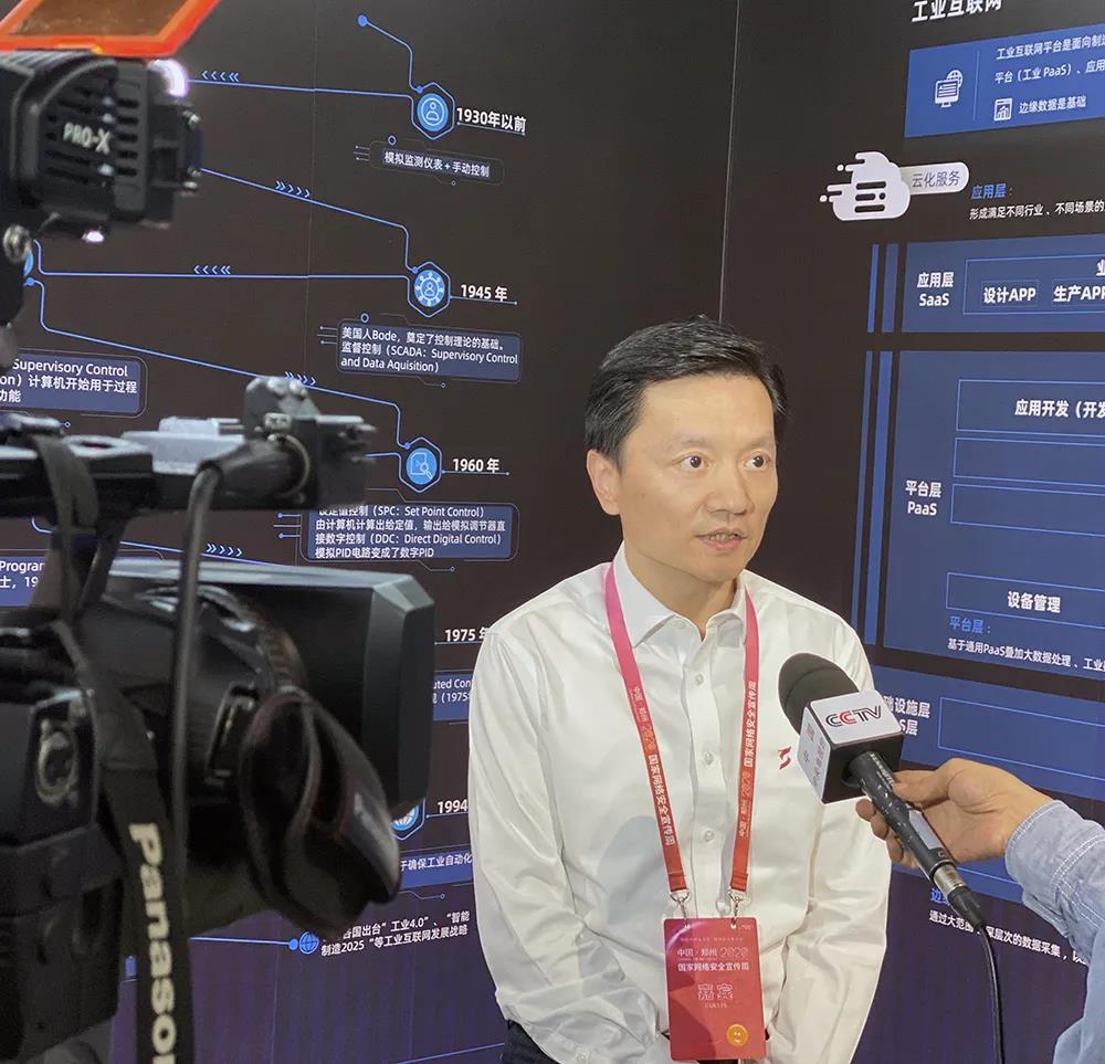 CCTV《朝闻天下》对2020国家网络安全宣传周郑州高峰论坛进行了现场报道,就工业互联网安全这一话题采访了安恒信息董事长范渊。