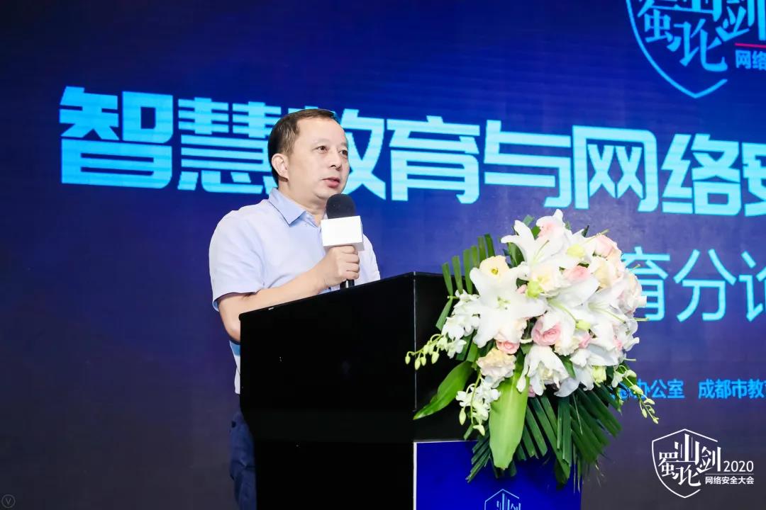 成都市教育局党组成员、副局长马海军为分论坛致辞,并提到面对发展带来的新变革、新样态,应该去切实推进成都高质量的教育信息化,进一步完善管理机制和策略,用网络安全防护建设为教育教育发展夯实基础。