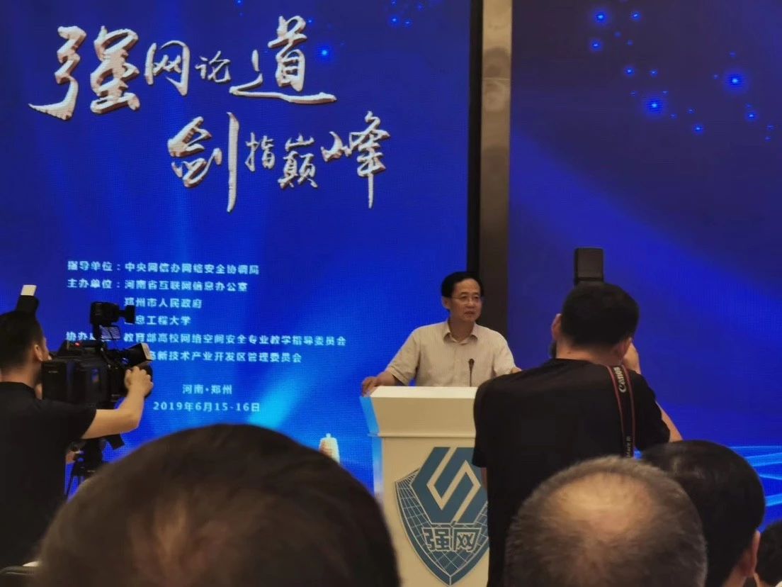 在国家互联网信息办公室网络安全协调局指导下,由河南省互联网信息办公室、郑州市人民政府、信息工程大学共同主办的第三届“强网杯”系列活动于2019 年6 月15 日至16 日在郑州高新技术产业开发区光华大酒店举行。本届强网论坛以“新时代、新空间、新路径”为主题,由“一会”、“一赛”、“一展”等组成。