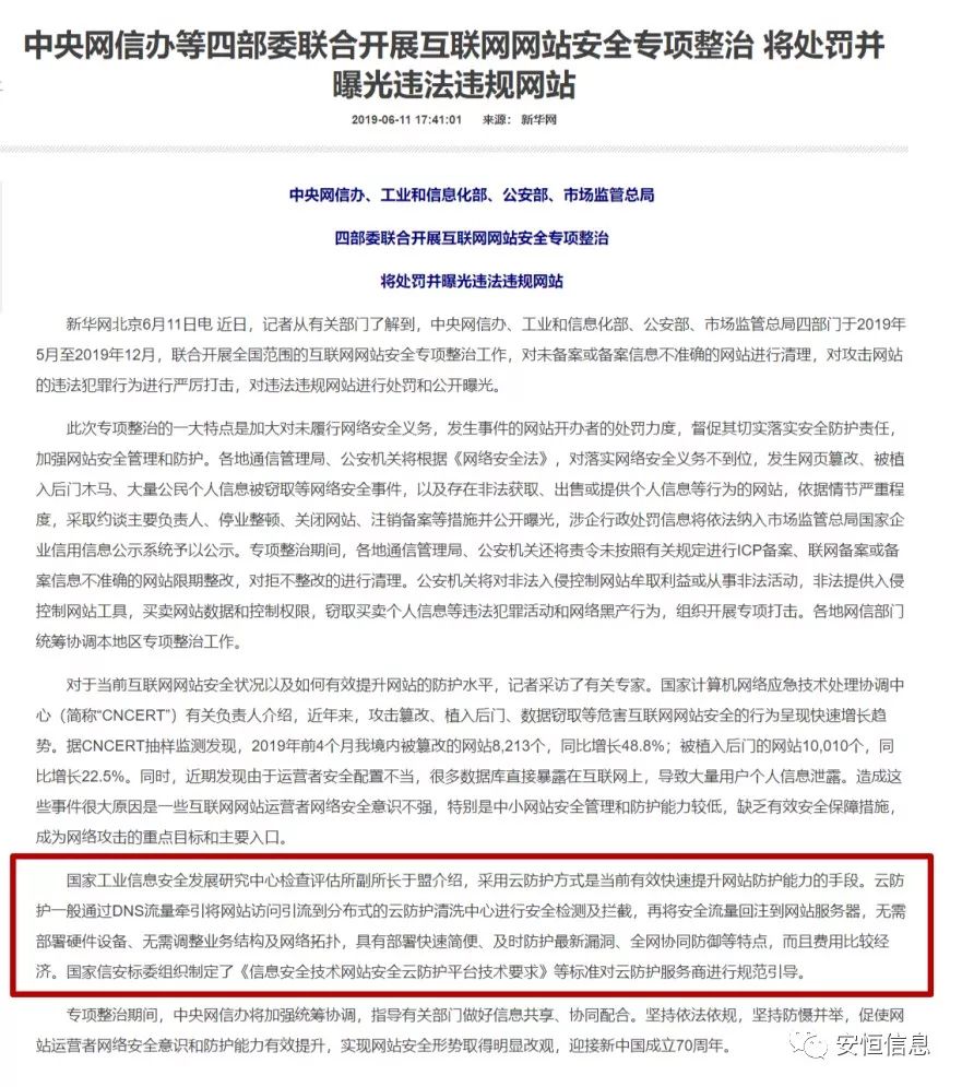 四部委联合开展互联网网站安全专项整治,如何有效开展“云防护”?