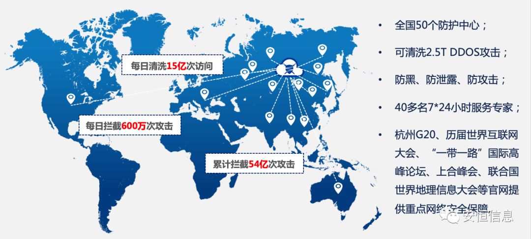 1 DDOS防护:DDOS最大清洗峰值可达2.5T,保障在线业务系统的可用性和连续性。