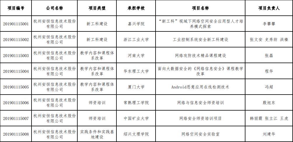 顺利完成教育部2019年第一批产学合作协同育人项目申报工作后,11月,安恒信息再次成功申报教育部2019年第二批产学合作协同育人项目,共有16个项目。欢迎申报!