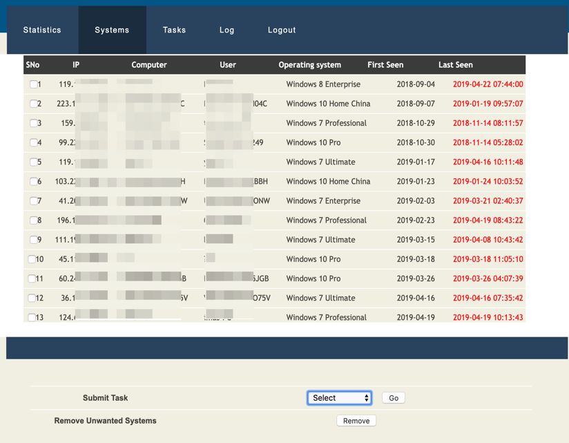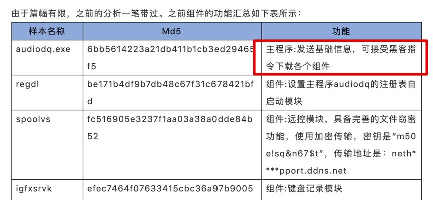 该后台地址列举被攻击目标的IP、电脑名、用户名、操作系统、第一次回连时间、最后回连时间。这些信息的搜集都由主木马audiodq进行搜集,之前关于该文件的功能描述如下: