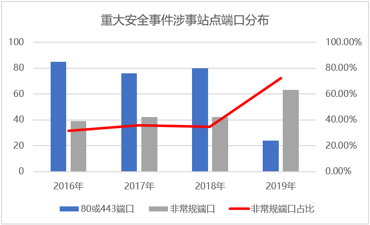 2019年以来,非常规端口网站已经成为黑客的主要目标,72.4%的重大安全事件均来自非常规端口网站。