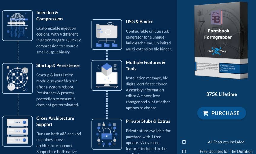 FormBook从2016年开始就在国外黑客论坛上进行售卖,但并不直接售卖木马构建器,而只提供操作界面,相当于购买恶意软件即服务,即攻击者可以根据其所需参数购买已编译的恶意软件。
