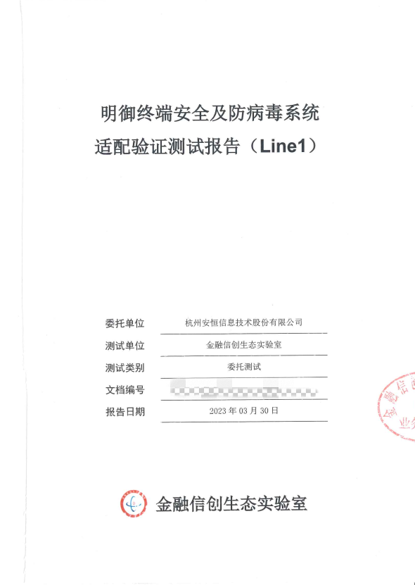 近日,安恒明御终端安全及防病毒系统(以下简称“安恒EDR”)顺利通过金融信创实验室的信创适配验证。