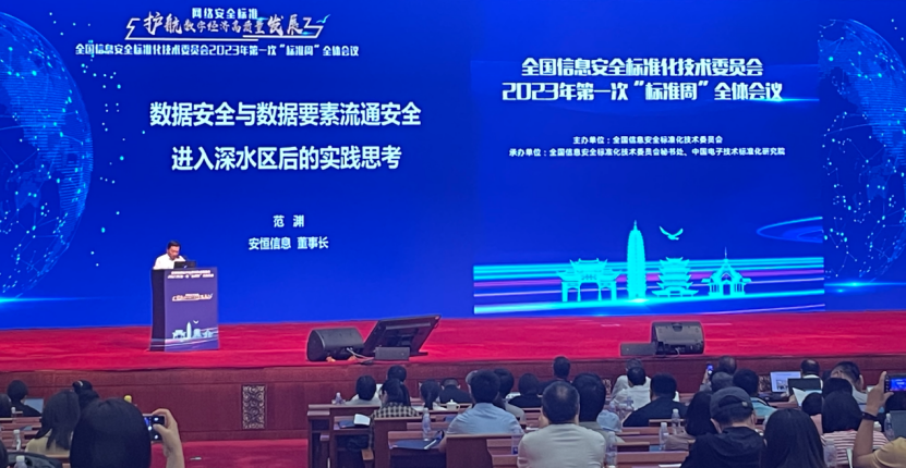 5月29日,全国信息安全标准化技术委员会2023年第一次“标准周”活动在云南昆明举行,安恒信息董事长范渊受邀出席全体会议,并围绕《数据安全与数据要素流通安全进入深水区后的实践思考》发表演讲。