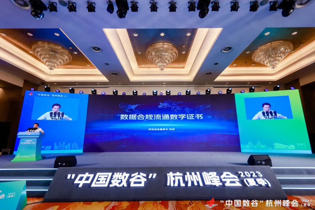 “中国数谷”2023杭州峰会(夏季)举行,安恒信息董事长范渊介绍“数据合规流通数字证书”
