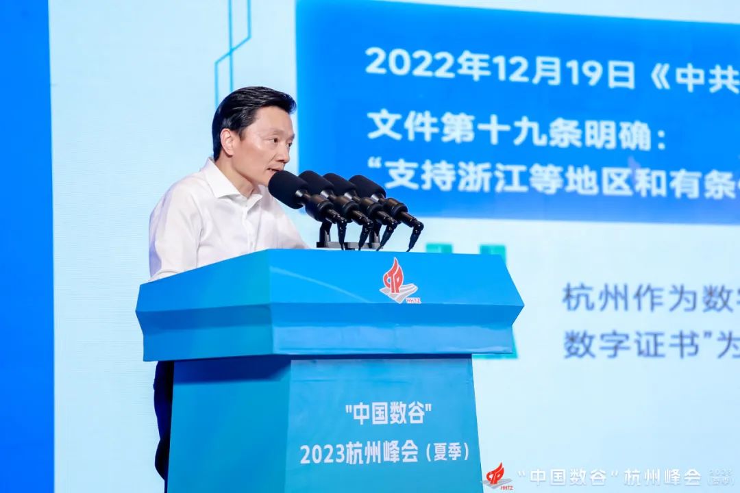 8月23日下午,以“蝶变奋进 数商之都”为主题“中国数谷”2023杭州峰会(夏季)在杭州高新区(滨江)顺利举行。本次峰会由浙江省发展和改革委员会,杭州市人民政府指导,由杭州市发展和改革委员会,杭州市数据资源管理局,杭州市金融投资集团有限公司,杭州高新区(滨江)党委、管委会、政府共同主办。