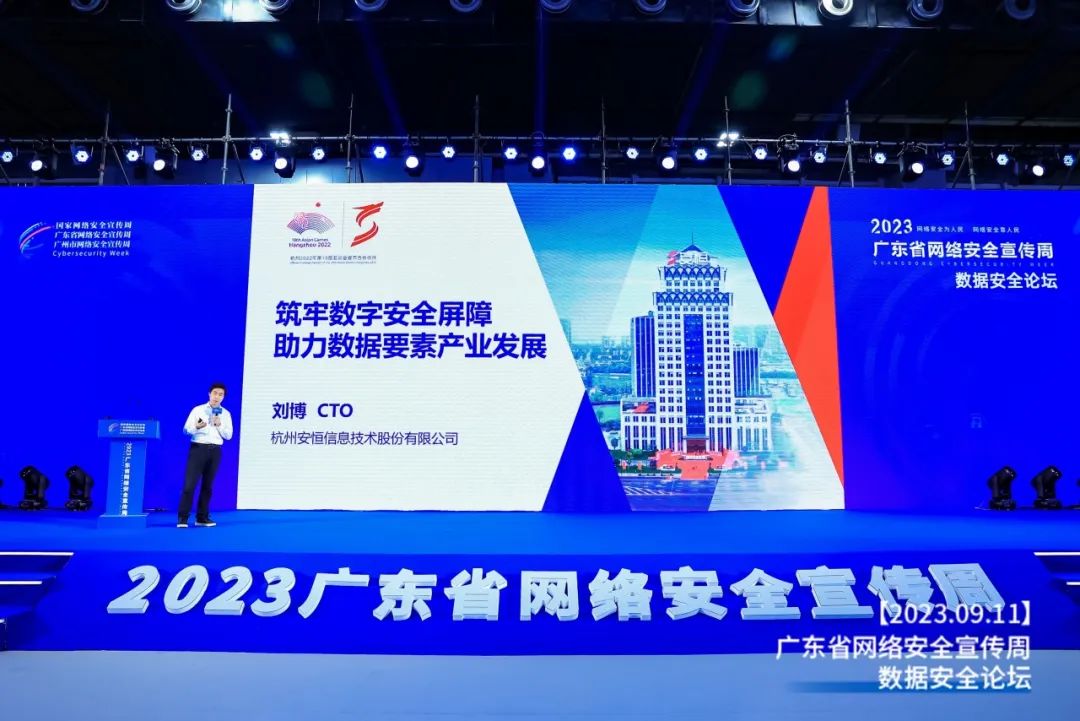 9月11日下午,作为2023年广东省网络安全宣传周系列活动之一,数据安全论坛在广州广交会展馆举办。论坛以“筑牢数据安全屏障 护航数字经济发展”为主题,安恒信息作为协办单位之一,深度参与数据安全论坛,共划数字中国建设下的数据安全。此外,安恒信息CTO刘博受邀出席并作《筑牢数字安全屏障 助力数据要素产业发展》主题演讲。