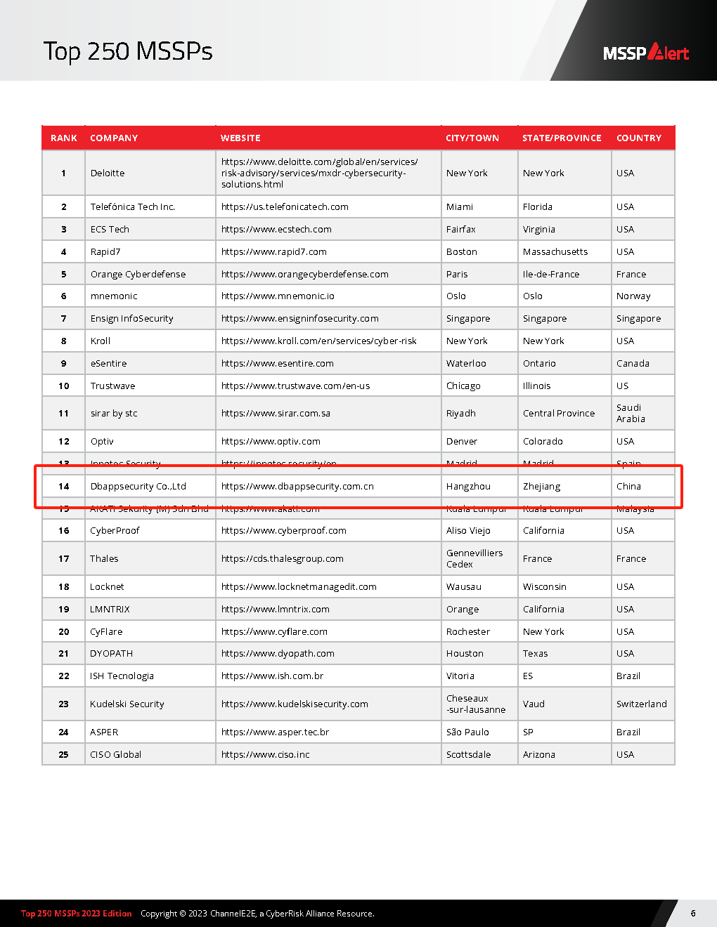 安恒信息荣登「2023年MSSPs TOP250报告」全球榜单