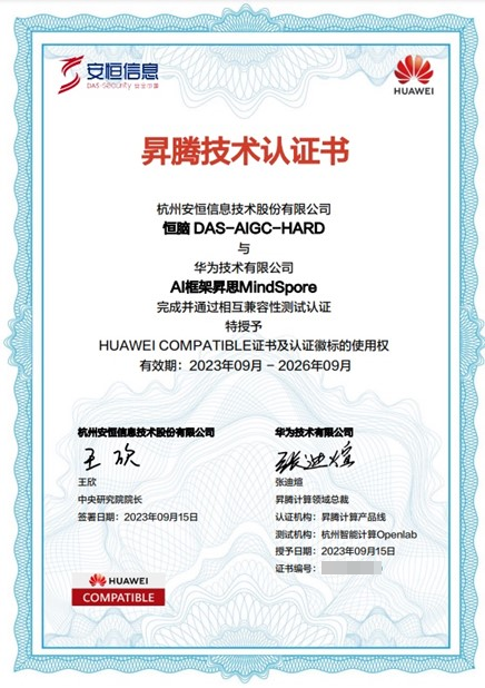 安恒恒脑获昇腾技术认证,大模型一体机已完成适配