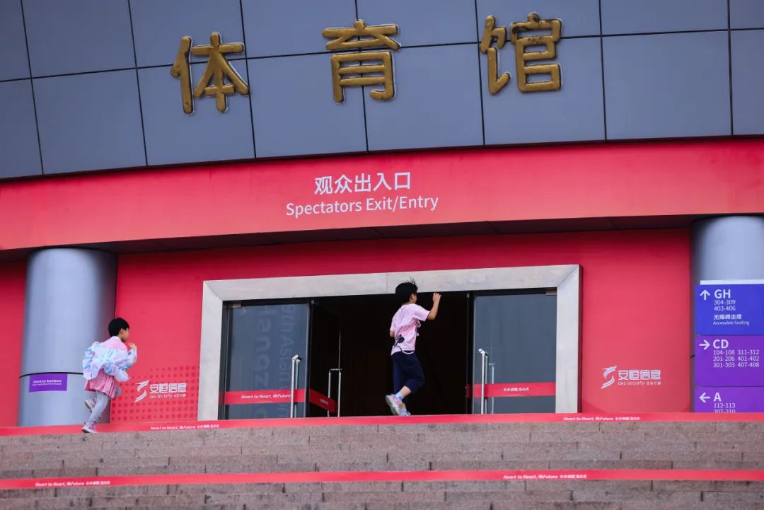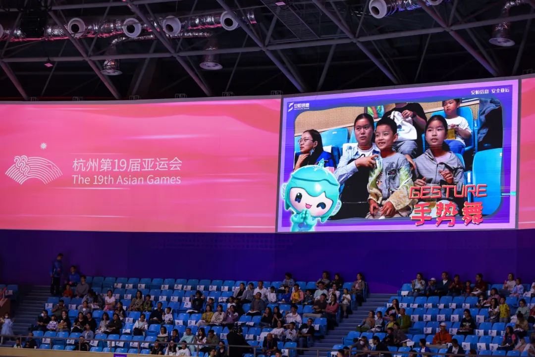 在场馆的观众出入口布置的红色墙面中,安恒信息也以热情饱满的姿态欢迎四方到来。在赛场上,安恒信息也环绕四周,在默默地守护着数字世界的同时也在为运动员们呐喊助威,期待健儿再创佳绩。