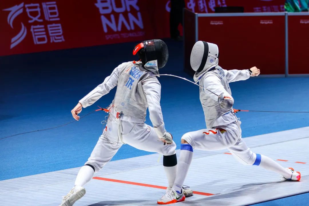 杭州亚运会击剑比赛赛程从9月24日持续至9月29日,在杭州电子科技大学击剑馆举行,分设男子、女子个人和团体赛,共产生12枚金牌。“安恒”元素分布在场馆的角角落落,你发现了吗?