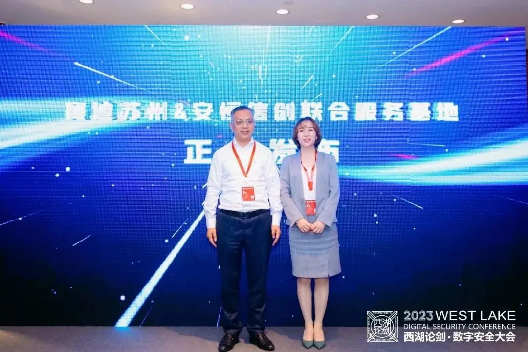 苏州赛迪公司陈昊与安恒信息刘志乐共同发布了「苏州赛迪&安恒信息信创联合服务基地」