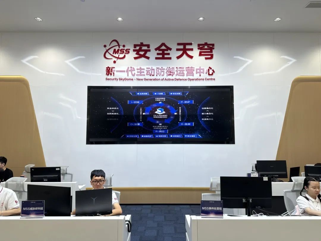 除了在一楼参观安全创新体验中心,还有可以走进MSS亚运天穹——新一代主动防御运营中心。MSS亚运天穹于今年5月正式启用,从“看见攻击”到“看清攻击”,在亚运会期间7x24小时全时段协助赛事场馆的各项网络安全工作。