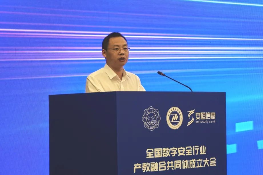 教育部职业教育与成人教育司职业院校发展处处长任占营在大会上表示,数字安全共同体的建设是推进数字安全行业高质量跨越式发展的重要举措。他强调了共同体建设的意义,并希望共同体能建设成为特色最鲜明、行业最认同、成效最显著、全国最知名的产教融合共同体。