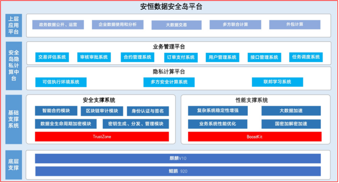 基于鲲鹏硬件TrustZone打造安全可靠的TEE计算环境,并适配了OpenEuler操作系统,全方位的保障了数据计算过程中的安全,真正实现了“数据可用不可见”。