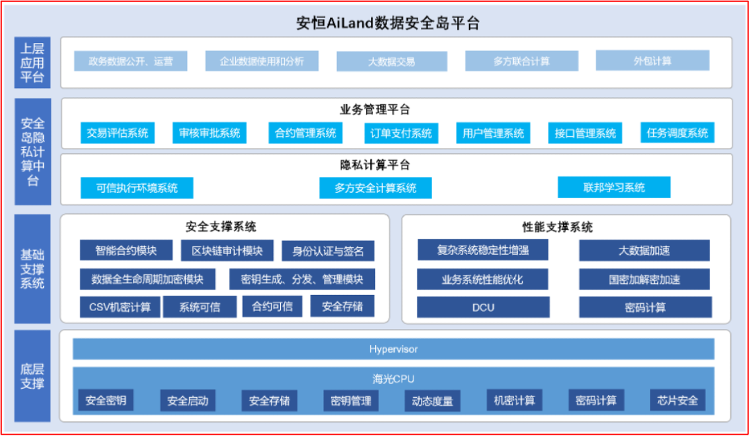 AiLand数据安全岛支持包括鲲鹏、海光和Intel在内多种支持可信执行环境的安全处理器。