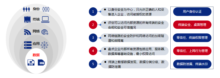 通过终端安全管理模块,保障终端可管;通过网络准入控制,保障身份可信,通过终端EDR,保障入侵可防;通过终端DLP,保证数据可控。从边界到端点,从入网到检查响应,最终围绕着数据的保护,构成了基于零信任的统一终端管理平台,作为整个安全评估体系中的关键环节,可以实现更好的整合联动,更好的运维以及更好的 ROI 。
