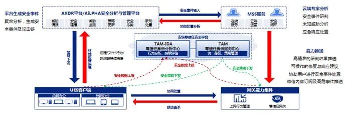 终端安全并不是一个孤立的封闭体系,而是一个开放的自适应联动攻防体系。UES与安恒AXDR平台、AiLPHA安全分析与管理平台联动,不仅满足了企业对终端安全防护的需求,同时还提供安全事件研判、未知威胁分析、应急响应处置等能力,大幅提升了安全防护效率,可更快地构建办公网终端一体化安全体系。