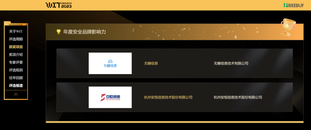 安恒信息荣膺WitAwards 2023“年度安全品牌影响力”大奖