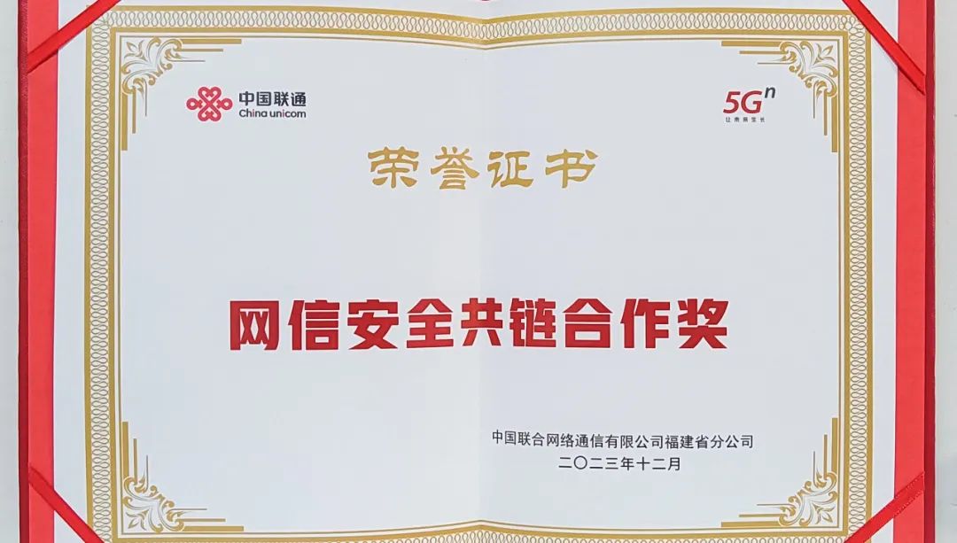 安恒信息获颁福建联通“年度网信安全共链合作奖”,携手共赢未来