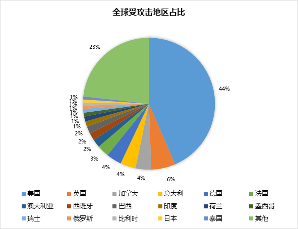 2023年,美国、英国、加拿大、意大利和德国仍是攻击的五个重要受害地区,其中美国是受攻击最严重的地区,共发生了2103 起攻击事件。上述几个受影响最严重的国家拥有庞大的经济规模和复杂的产业结构,所属地区运营着大量的跨国公司和大型企业。这些公司有着复杂的供应链和广泛的业务覆盖范围,且具备更多的资金和敏感数据,因此极易成为勒索团伙的目标。